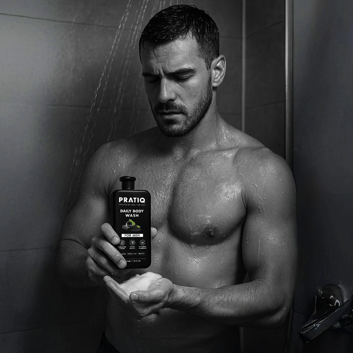 Notre formule unique de charbon actif et d'huile de menthe poivrée revitalise instantanément la peau masculine, éliminant les signes de fatigue et laissant une peau rafraîchie, hydratée et revitalisée. Conçu spécialement pour répondre aux besoins des hommes, PRATIQ est la solution idéale contre l'acné du dos et les imperfections.